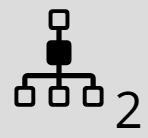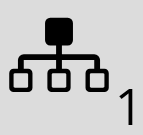 Kořenový projekt má vyplněný horní uzel a tři prázdné uzly dole. Kořenový projekt má vždy jen dceřiné projekty. Číslo u ikony zobrazuje počet přímých podprojektů (dceřiných projektů v první úrovni). Číslo u ikony bude vždy minimálně 1.